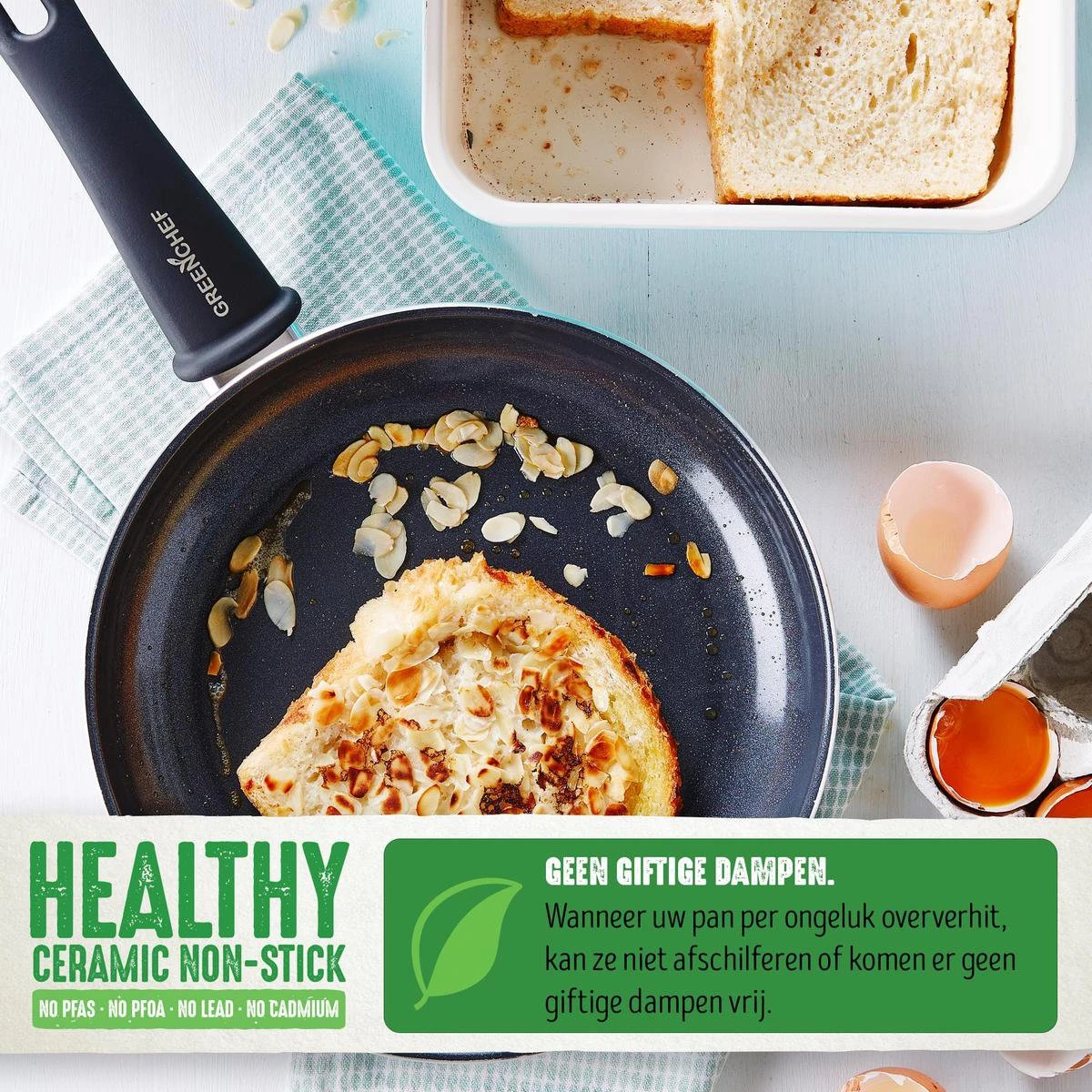 Greenchef, van de makers van GreenPan, maakt de gezonde chef in jou wakker! Met de Thermolon™ gezonde keramische antikleeflaag ben je altijd zeker van een antikleeflaag zonder de schadelijke stof PFAS én van perfecte bakresultaten. Alle GreenChef producten combineren veilige kwaliteitsvolle materialen met de nieuwste technologieën. 0% schadelijke stoffen, 100% bakplezier!