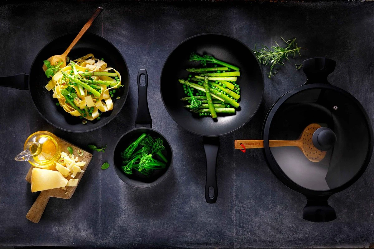 Deze robuuste Vesuvio braadpan van Mammoet Essentials is een echte topper op het gebied van bakken, braden en stomen. Deze pan is gemaakt van aluminium en heeft een anti-aanbaklaag aan de binnenzijde, waardoor etenswaren nooit vast zullen kleven aan de pan. De grote glazen deksel is voorzien van een stoomgat, waardoor overtollige warmte kan ontsnappen. De softtouch knop en handvatten zorgen ervoor dat de pan en deksel stevig in hand liggen. Bovendien is deze pan te gebruiken op iedere warmtebron, zelfs inductie. Aangeraden wordt om deze pan te wassen met heet water en een afwasborstel. De diameter van deze pan is 28 cm.